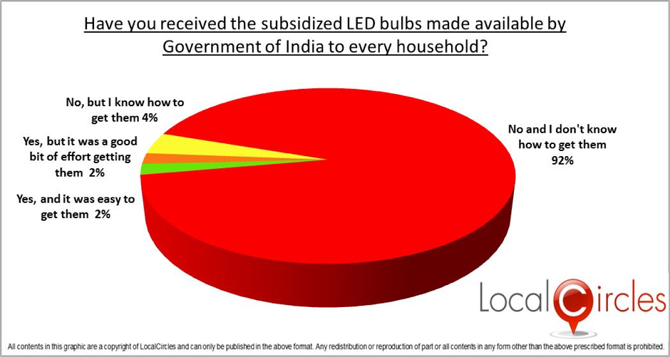 • 64 pct citizens say they haven’t gotten the LED bulbs and don’t know how to get them